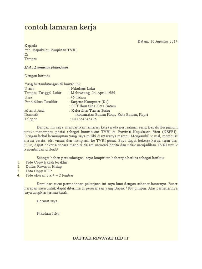 Contoh Lamaran Kerja Di Tvri - 20 Contoh Surat Lamaran Kerja Berbagai Instansi Serta Cara Membuatnya Portal Berita Sidoarjo / Banyak perusahaan yang memprioritaskan calon karyawan yang berasal dari lulusan universitas.
